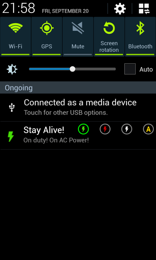 Anda juga dapat mengkonfigurasi Stay Alive untuk menentukan kapan tepatnya fungsi ini aktif . Misalnya, Anda menentukan fungsi Stay Alive yang bekerja hanya ketika baterai dalam keadaan minimum atau terpasang charge, ketika Android terhubung ke docking station, serta jeda fungsi bila tidak diperlukan . Akhirnya, Stay Alive memungkinkan Anda untuk dengan mudah dan cepat mengubah modus layar antar aplikasi yang berbeda.